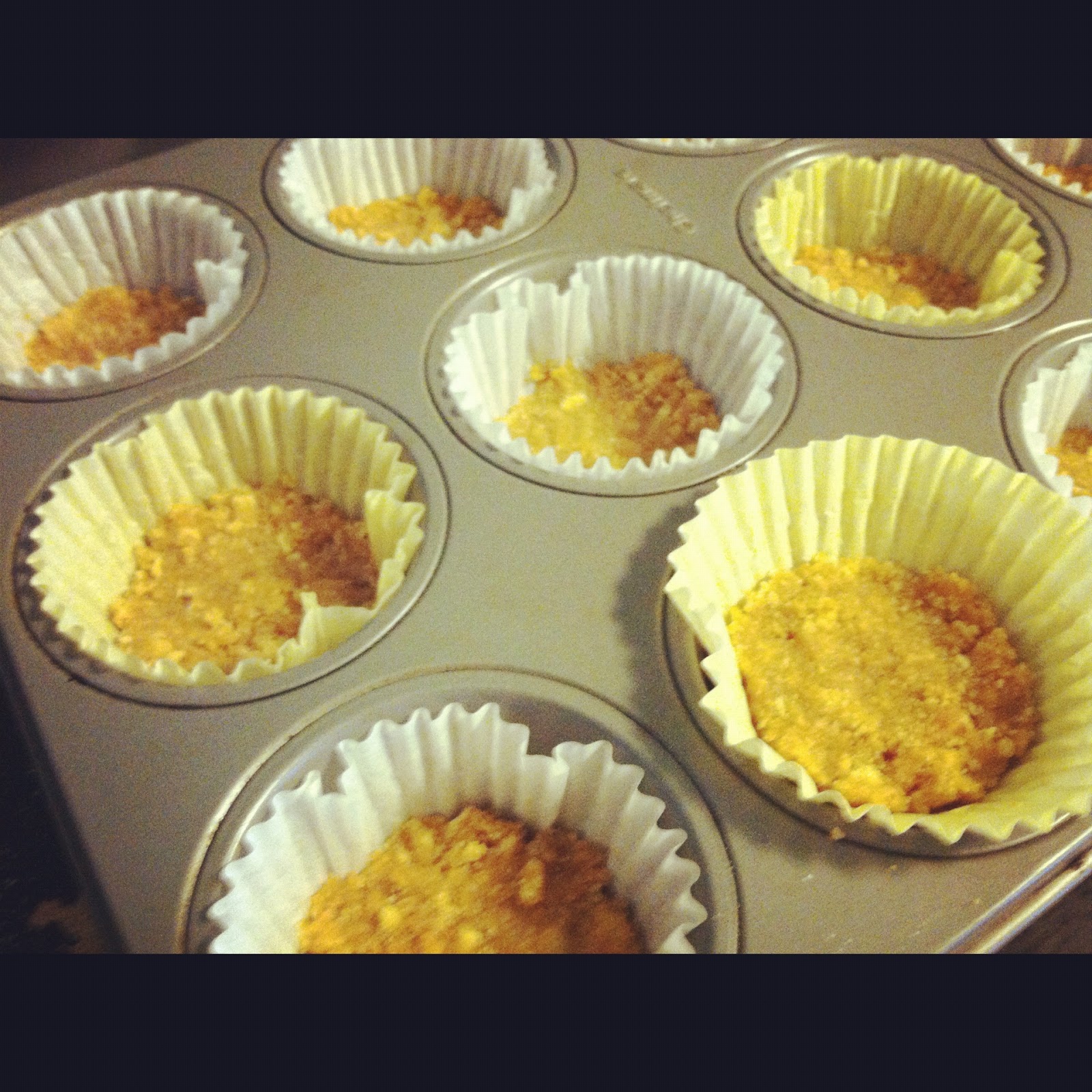 2. Put about 2 tsp of mixture into muffin tin cups and smash down.